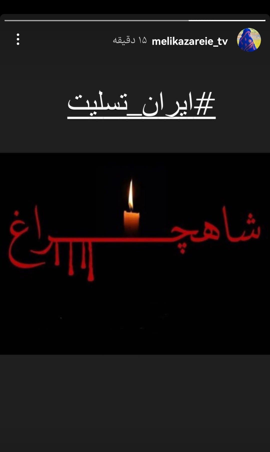 ملیکا زارعی در واکنش به حادثه تروریستی شاهچراغ یک استوری منتشر کرد.