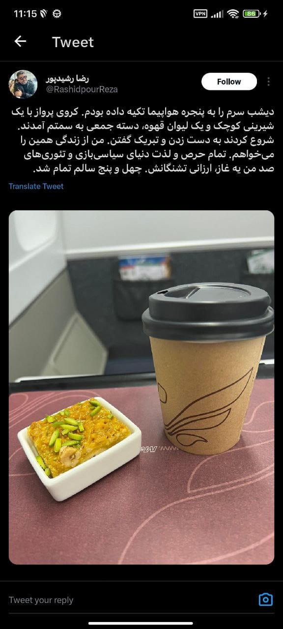 به گزارش سبک ایده آل، رضا رشیدپور توییت جدیدی را در صفحه شخصی خودش منتشر کرد. او نوشت: من از زندگی همین را میخواهم. تمام حرص و لذت دنیای سیاسیبازی و تئوریهای صد من یه غاز، ارزانی تشنگانش. چهل و پنج سالم تمام شد.