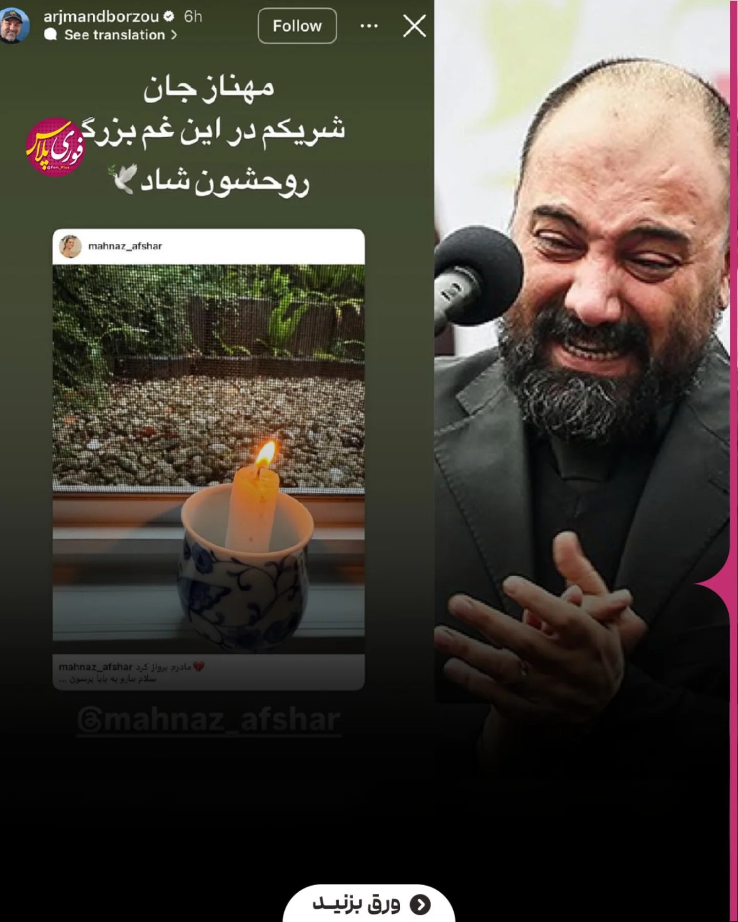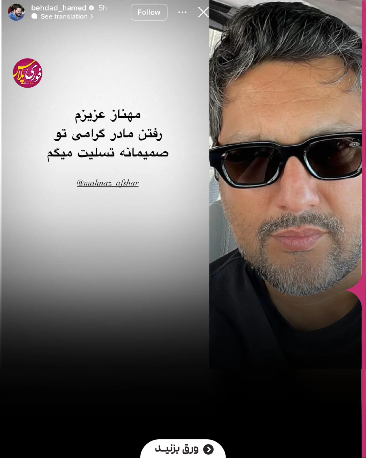 به گزارش پارسینه پلاس؛ در پی درگذشت مادر مهناز افشار، بسیاری از هنرمندان و چهرههای فرهنگی با انتشار پیامهایی در فضای مجازی، با این بازیگر سینما و تلویزیون ابراز همدردی کردند.