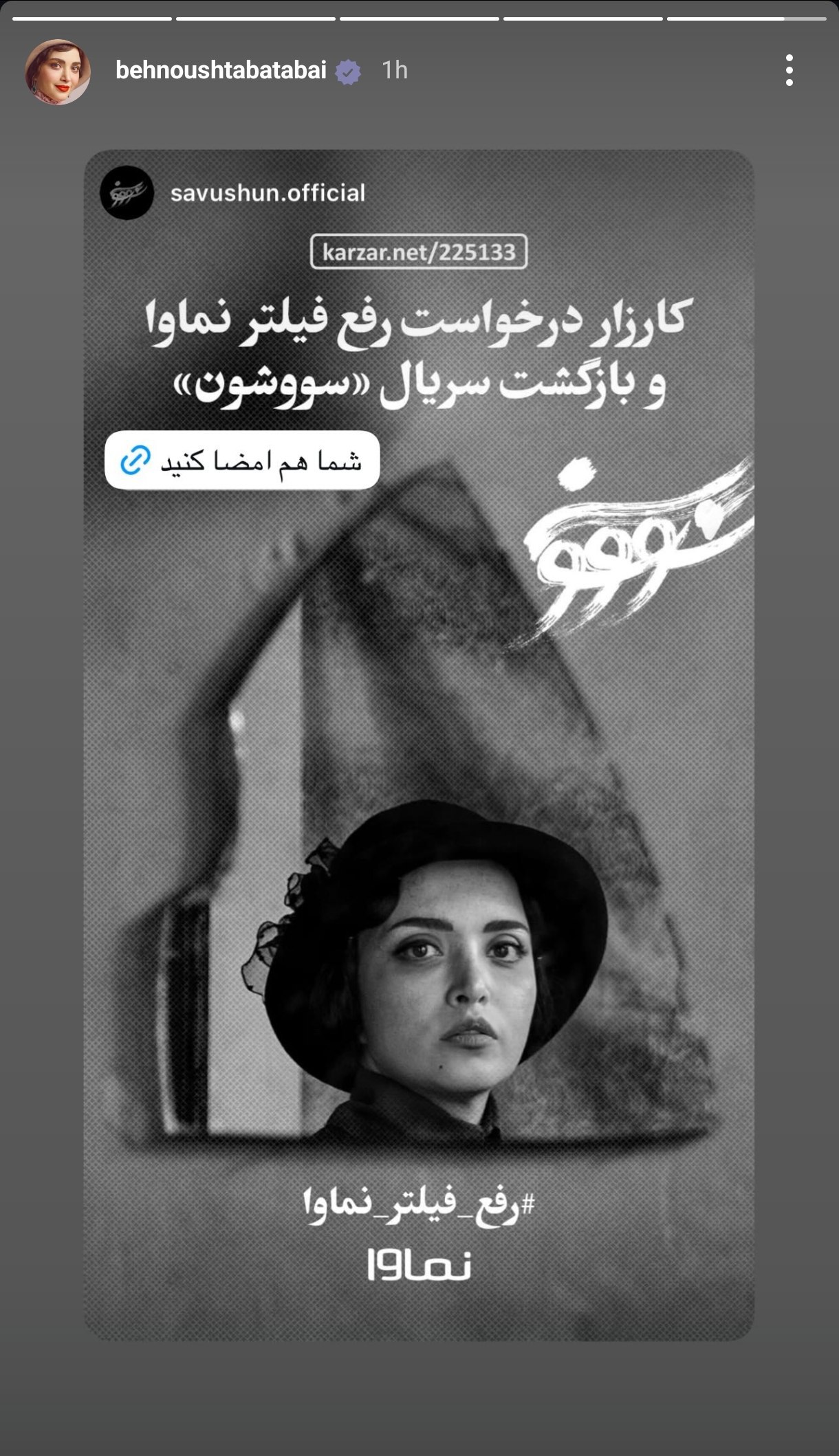 بازیگران سریال «ممنوعه» و «سووشون» در واکنشی مشترک به توقیف سریال «سووشون» و فیلتر شدن پلتفرم نماوا، کارزاری برای رفع فیلتر و بازگشت این سریال راهاندازی کردند.