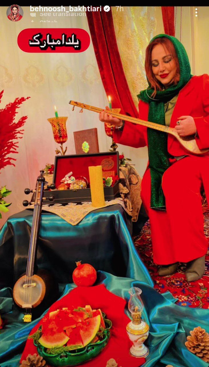 در ادامه عکسی از بهنوش بختیاری با عکس یلدایی را مشاهده می کنید که بسیار جالب و دیدنی است.
