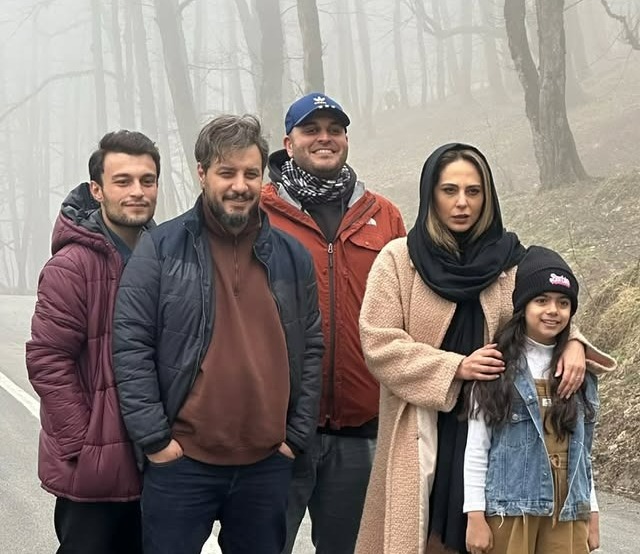 در تصویر منتشر شده از پشت صحنه زخم کاری، جواد عزتی بازیگر نقش مالک در کنار رعنا آزادی ور همسر سابقش و فرزندانش هانیه و میثم حضور دارد.