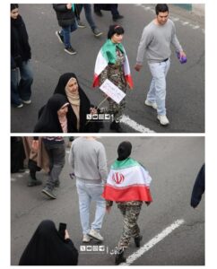 حضور متفاوت یک زن با استایل ارتشی در راهپیمایی تهران +عکس