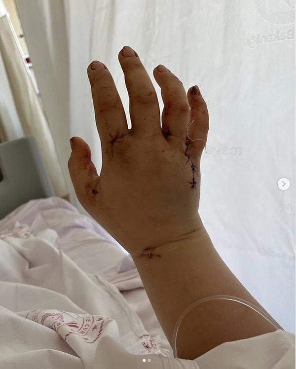 مروه وزیر اوغلو دست کبود و بخیه خورده خود را به اشتراک گذاشت. او نوشت: «دعا و محبت شما شامل حال من شد.