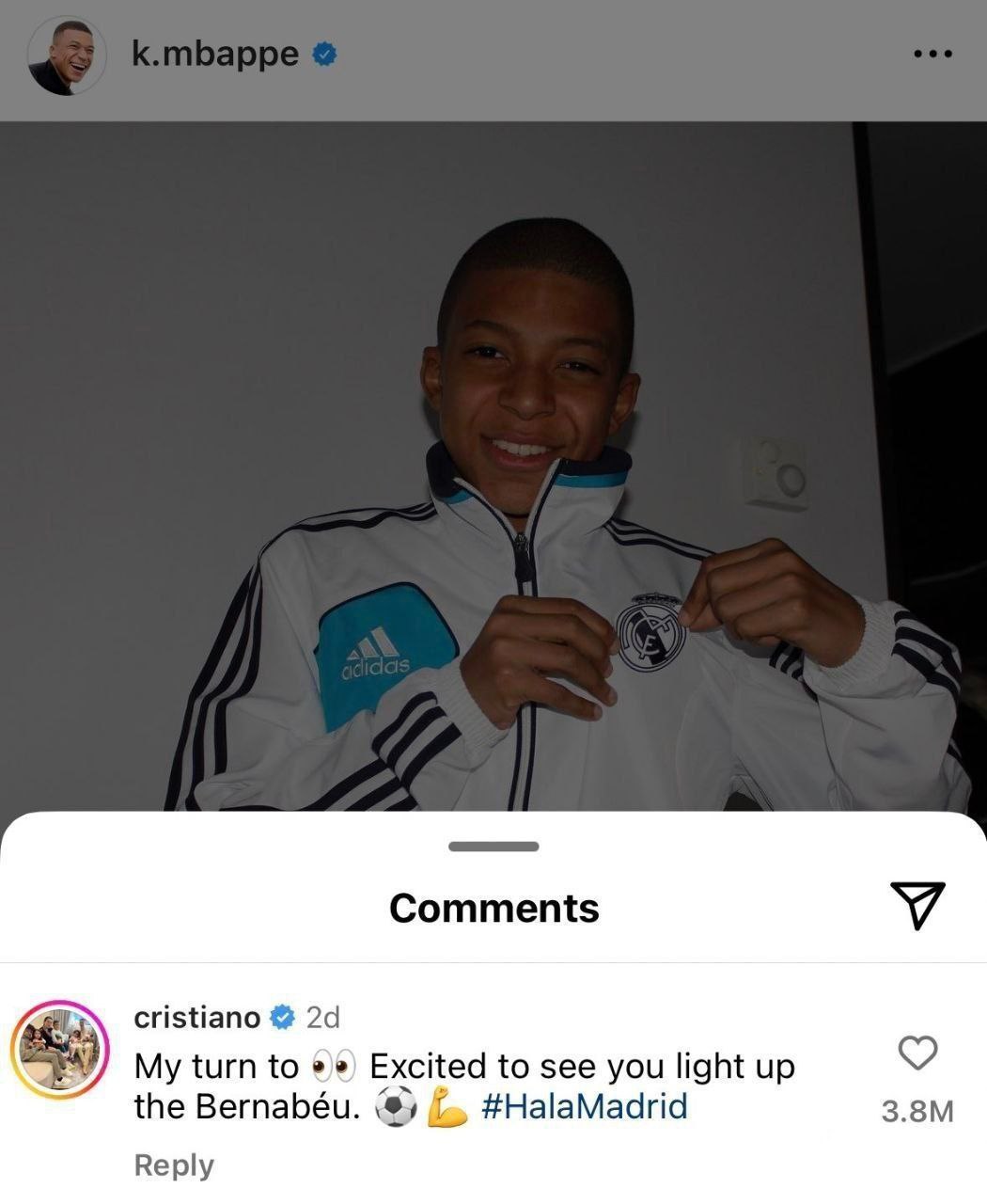در حالیکه که افراد معروف زیادی به انتقال امباپه واکنش نشان دادهاند، رونالدو هم ظاهر شد و در قسمت کامنتهای پست امباپه، احساساتش از این اتفاق را ابراز کرد.