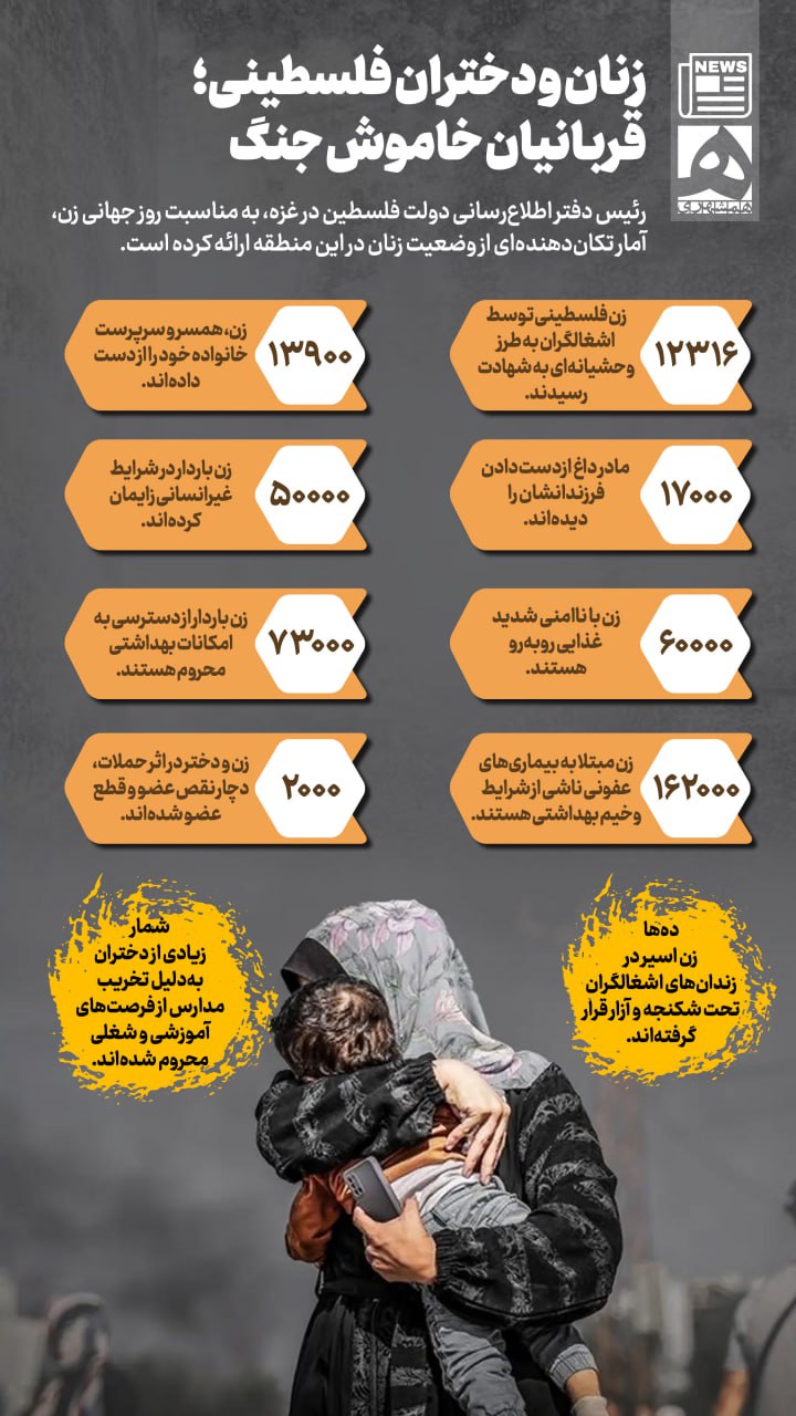 اشتراک گذاری توییتر پینتریست واتس آپ تلگرام گوناگون زنان و دختران فلسطینی؛ قربانیان خاموش جنگ تصویر زنان و دختران فلسطینی را در ادامه مشاهده میکنید. کپی لینک لینک کپی شد