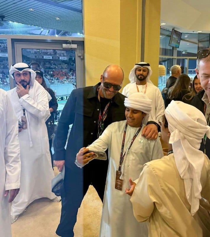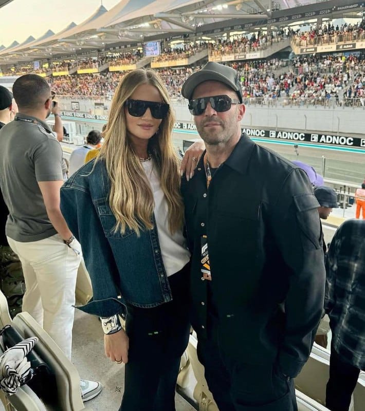 جیسون استتهام بازیگر ۵۶ ساله همراه با نامزدش رزی هانتینگتون سوپر مدل ۳۶ ساله برای حضور در مسابقات فرمول وان در ابوظبی حضور یافتند و همچنین از مسجد شیخ زاید دیدن کردند.