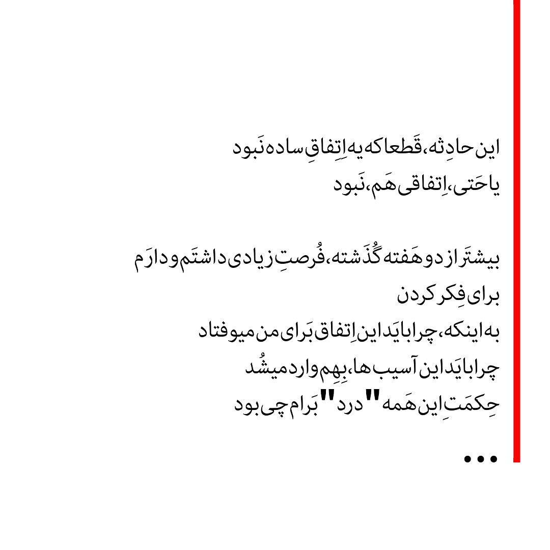 صحبت های حامیم بعد از گذشت بیست روز از تصادفش را در ادامه مشاهده میکنید؛ او گفت: این حادثه قطعا یک اتفاق ساده نبود. یا حتی، اتفاقی هم نبود.