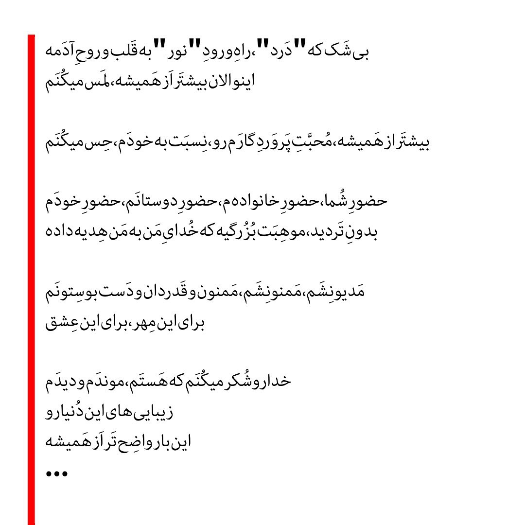 او در انتها خاطر نشان کرده: «منتظر دیدار، همصحبتی، همصدایی و خاطره سازی با شما هستم.»