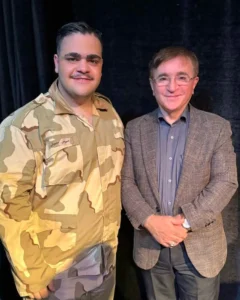 تصاویری که از نقش تازه او در قامت یک سرباز منتشر شده. وقتی خبرسازتر شد که پای یک مهمان خاص هم به میان آمد.دکتر انوشه برای تماشای این نمایش به دیدار گروه اجرایی رفته است.