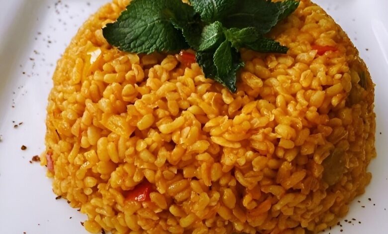 طرز تهیه پلو بلغور با بلغور گندم، گوجه و پیاز؛ دستور ساده، سالم و خوشمزه برای جایگزینی برنج، مناسب برای تغذیهٔ روزمره یا مهمانی.