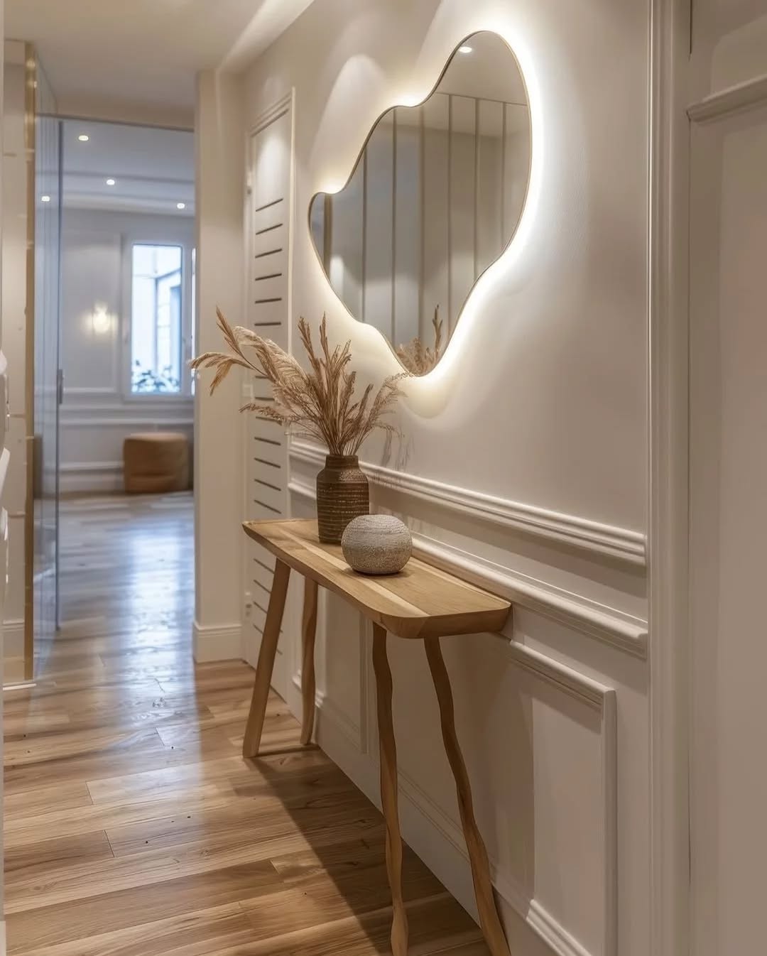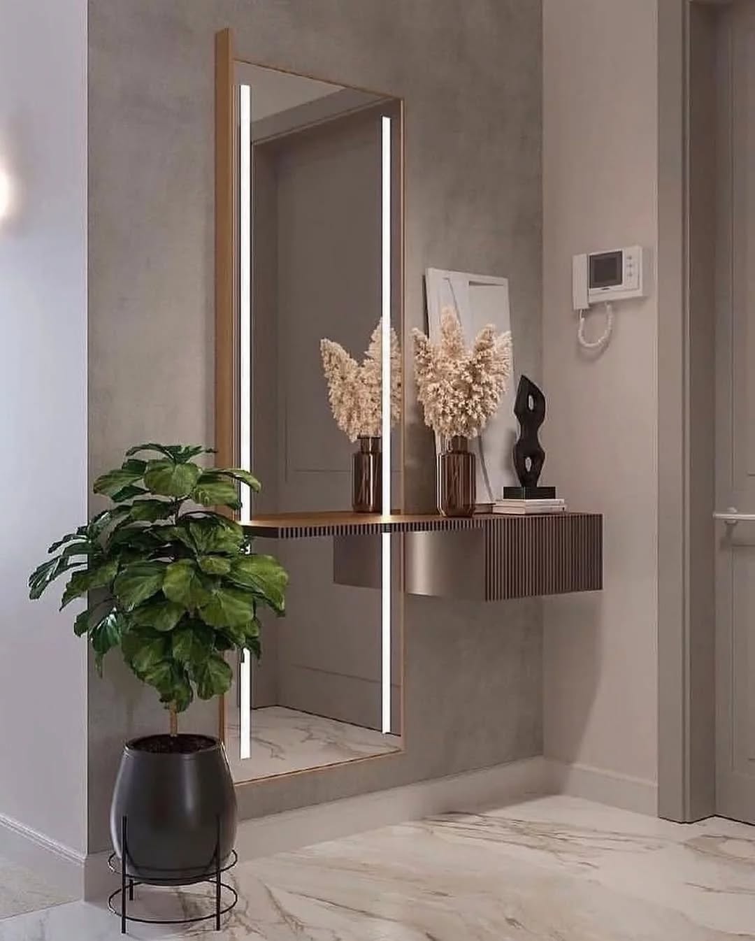 استفاده از کنسول‌های شیک یک میز کنسول با طراحی زیبا، همراه با آینه و اکسسوری‌های مدرن، می‌تواند ورودی شما را مجلل و کاربردی کند.